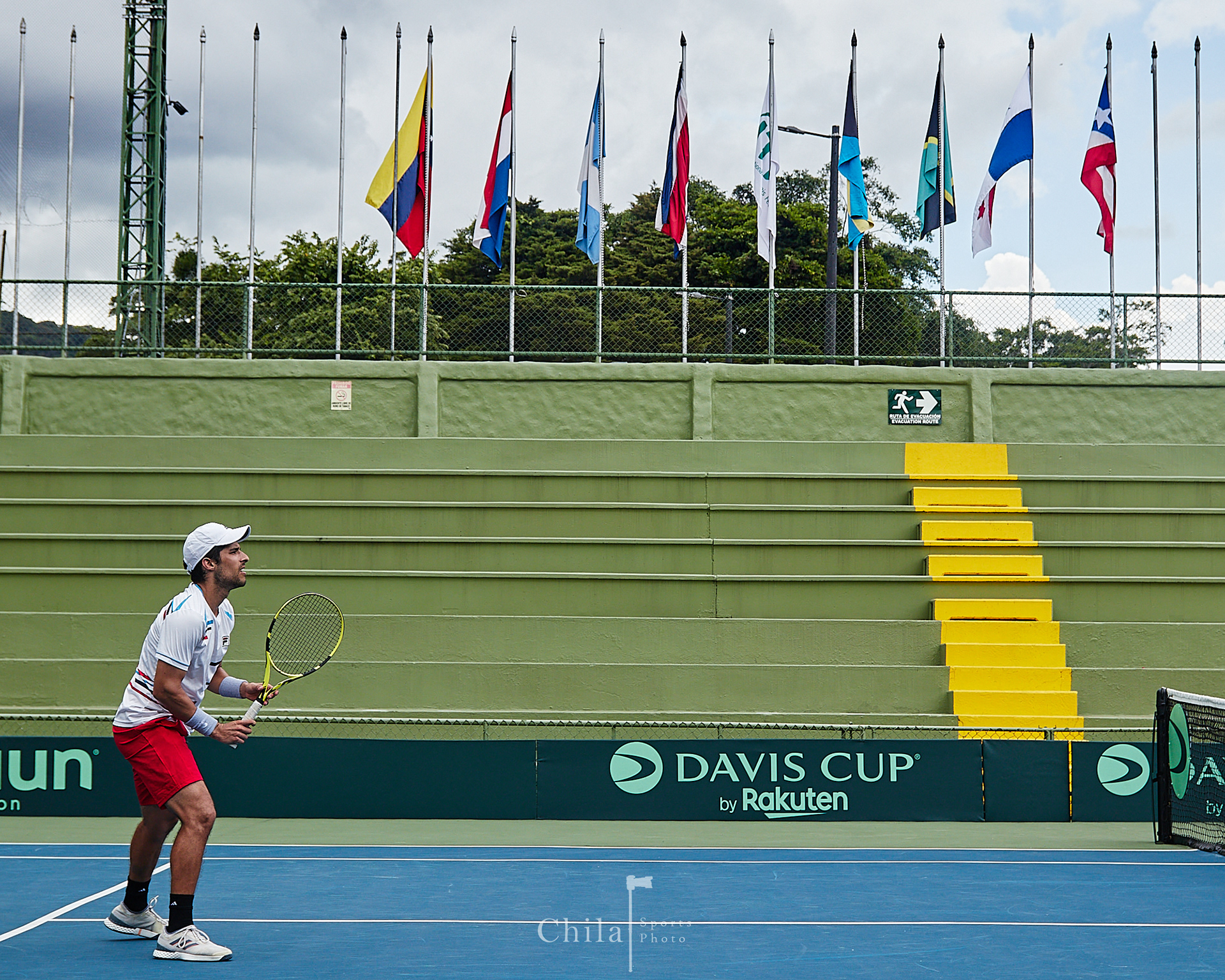 Sebastián Quirós (CRC) realiza su calentamiento para su partido de individuales