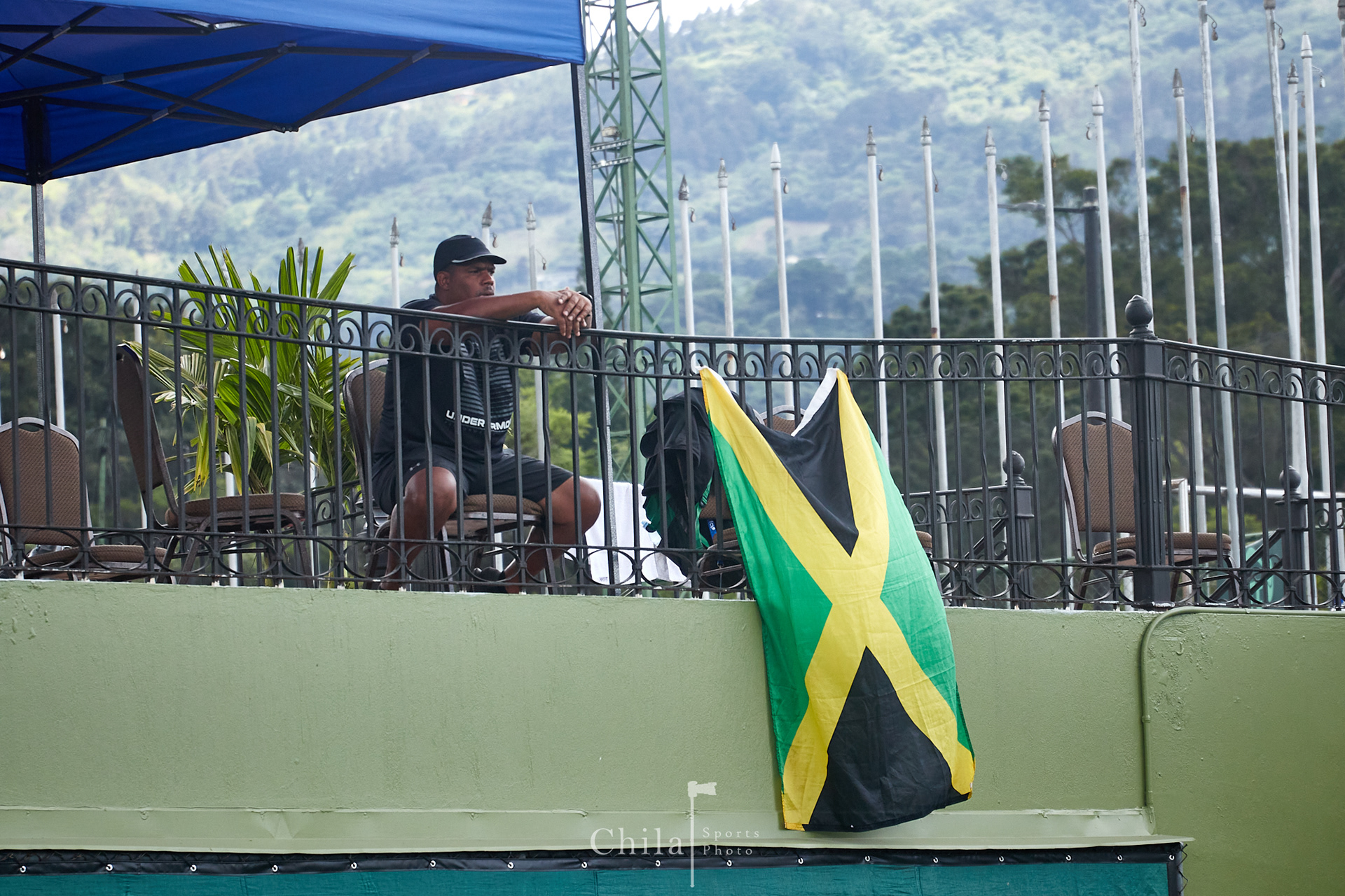 El equipo de Jamaica espera bajo la sombra en su partido de dobles