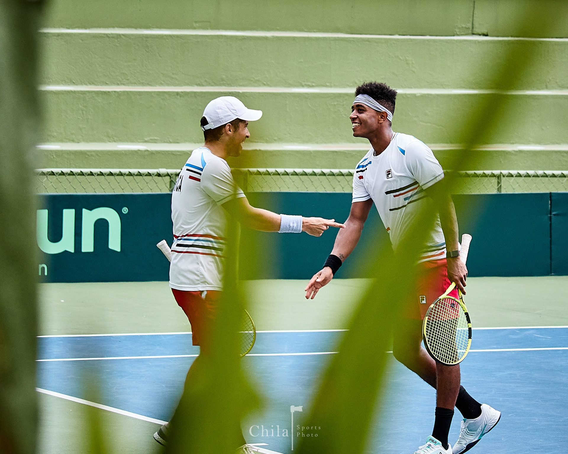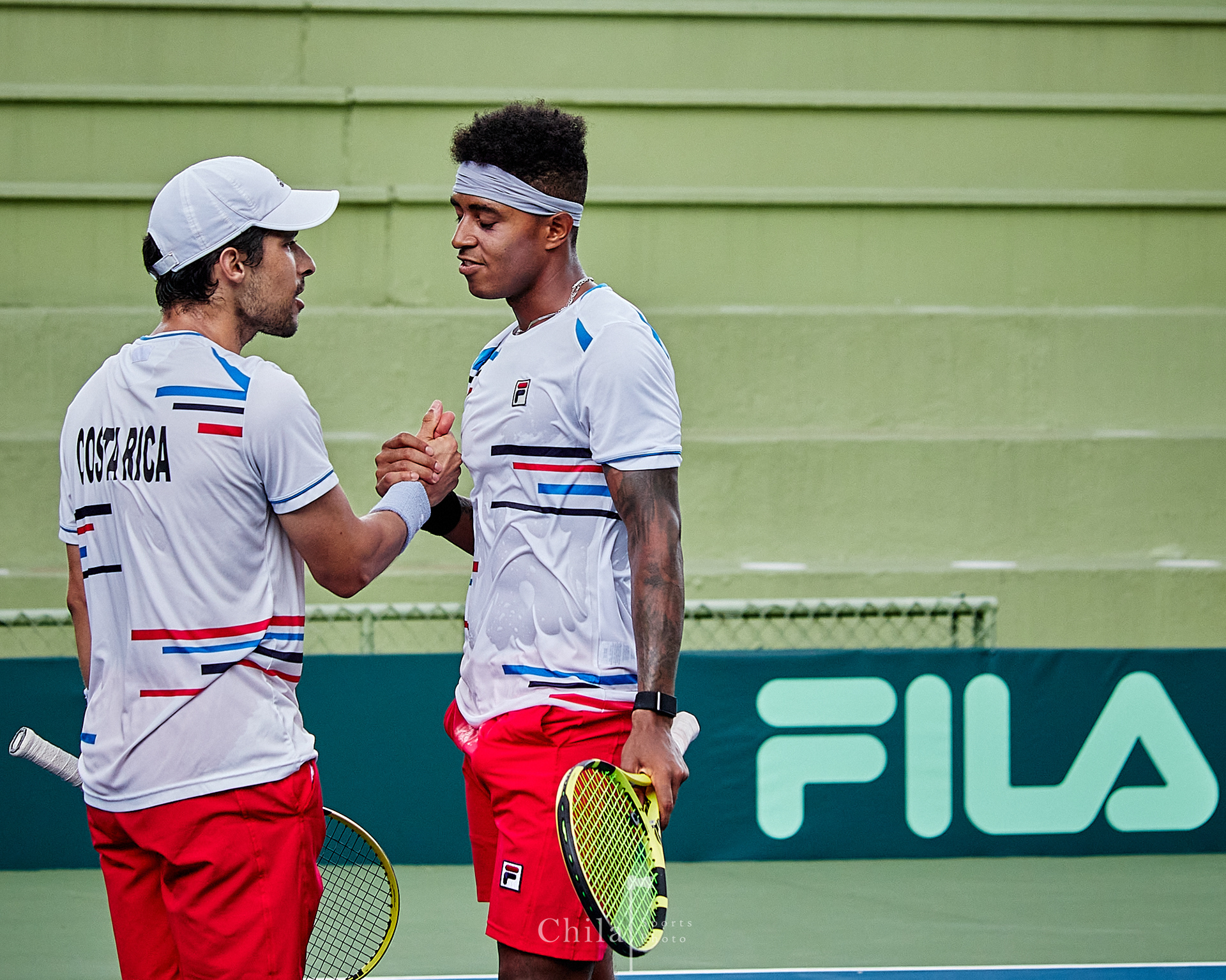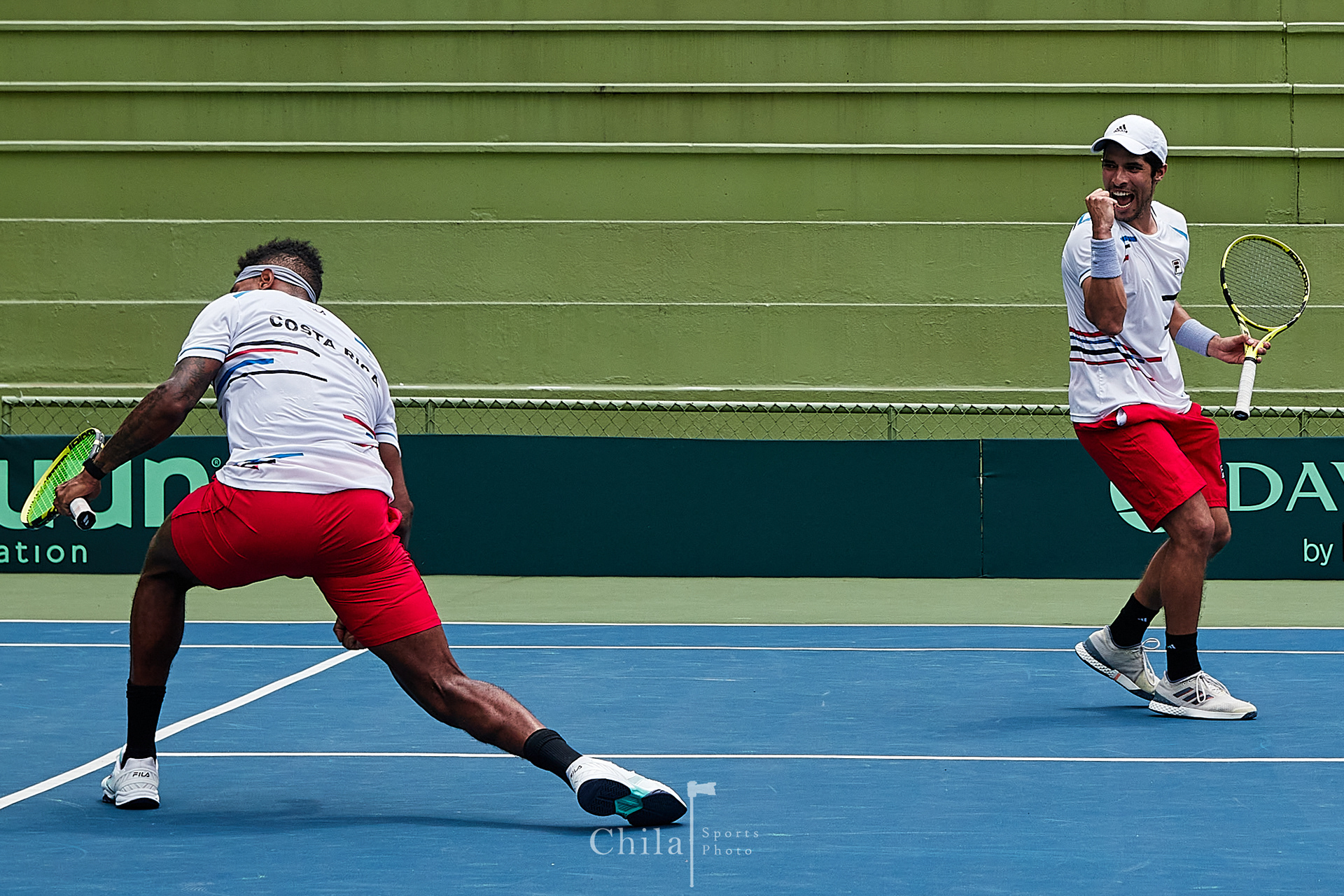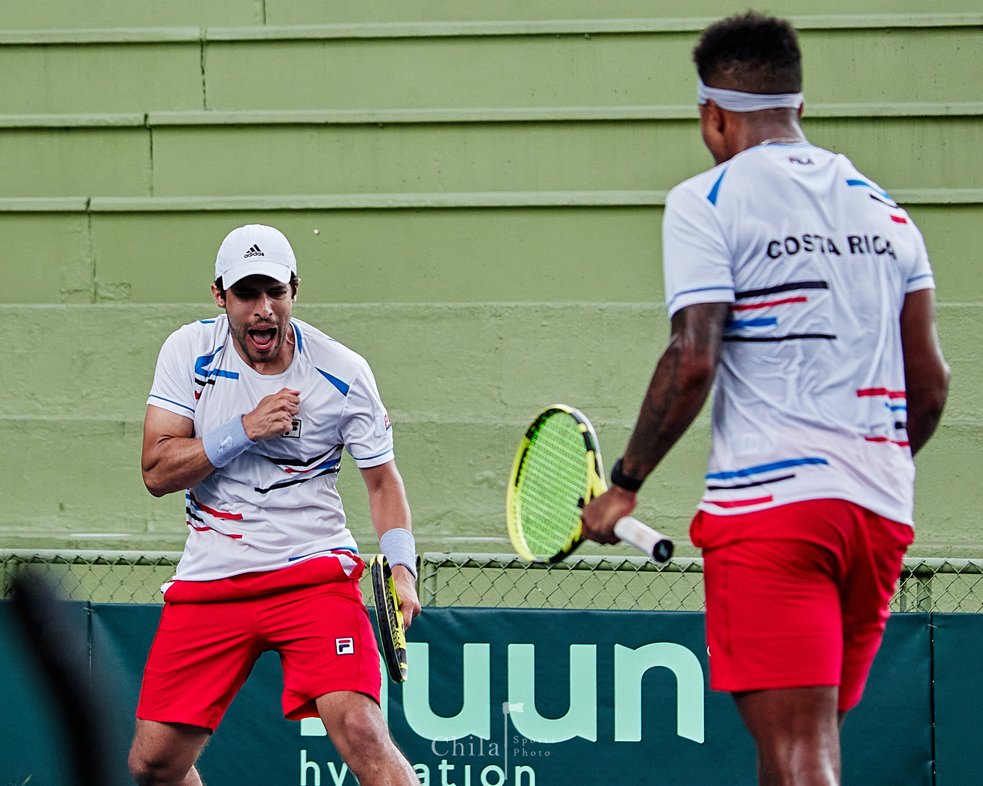 Pablo Nuñez y el capitán Kenneth Thome (CRC) celebra el gane en dobles que lo mantienen en el Grupo III