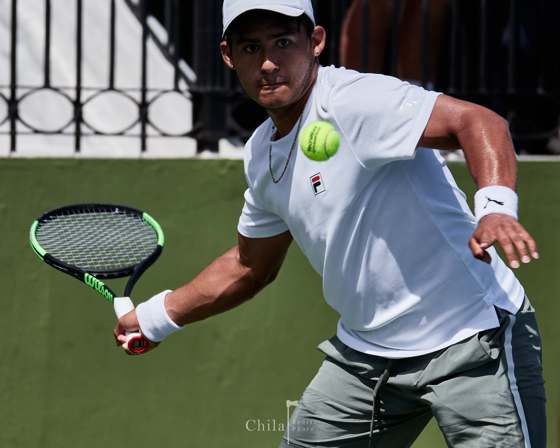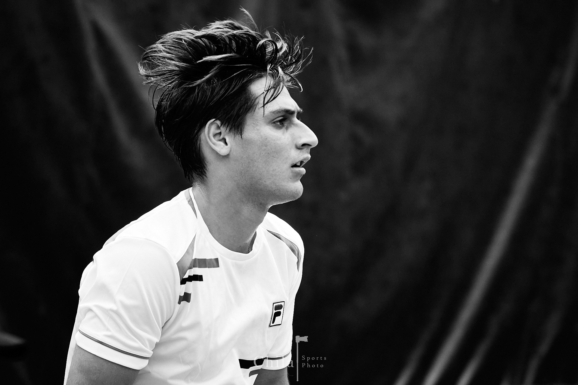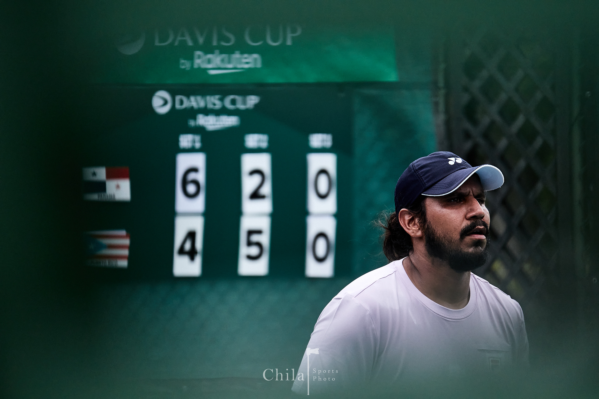 Sebastián Quirós (CRC) se concentra previo al inicio de su primer juego de individuales