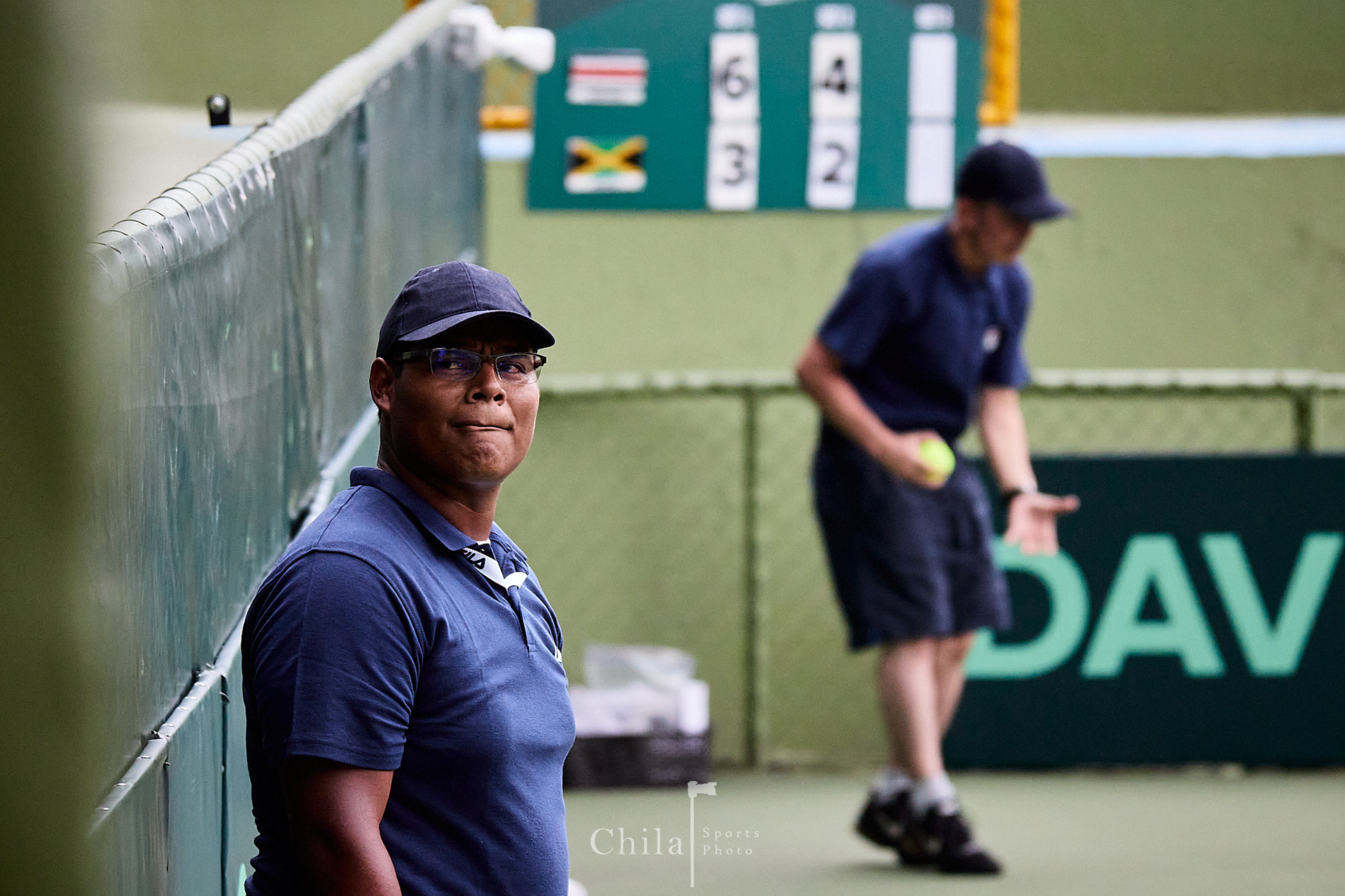 La pareja de Costa Rica con su capitán en su partido de dobles