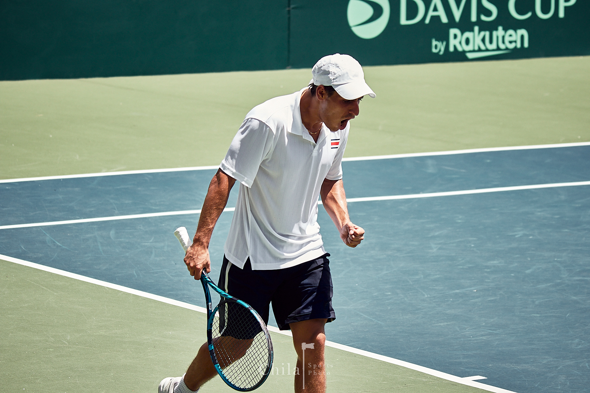 Jessie Flores (CRC) celebra el gane en dobles que lo mantienen en el Grupo III