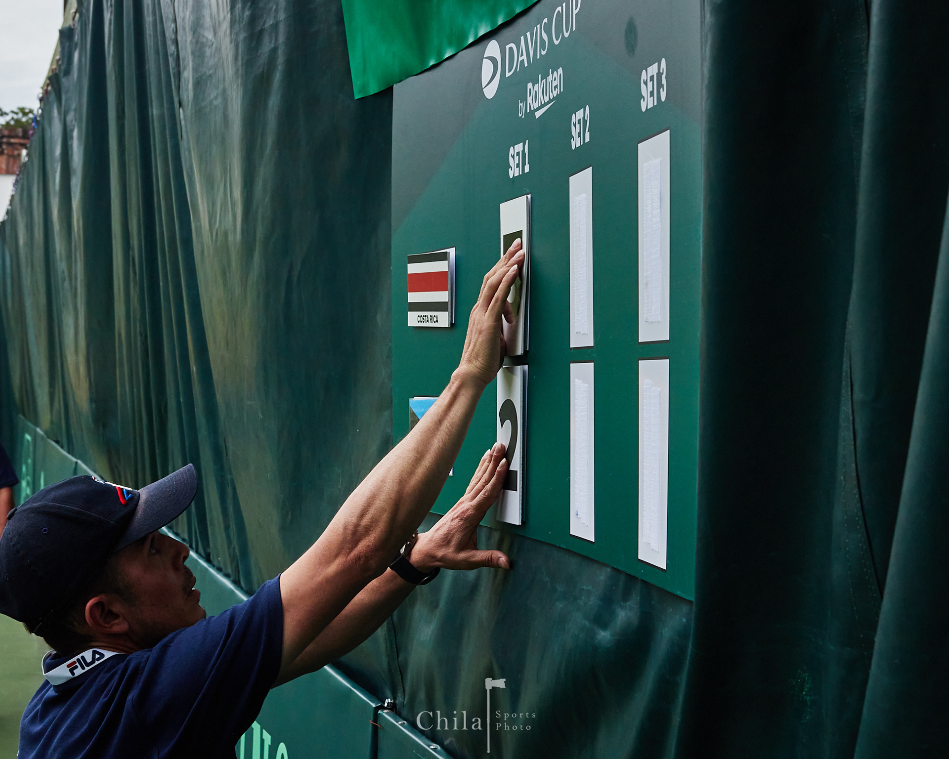 El Ball Boy realiza la actualización en el marcador en el partido de Costa Rica contra Puerto Rico